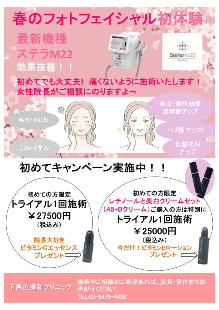 美容皮膚科は最新機種M22を使用したフォトフェイシャルと自宅で気軽にマイペースにきれいになれる塗り薬を使用した美容を行っております。